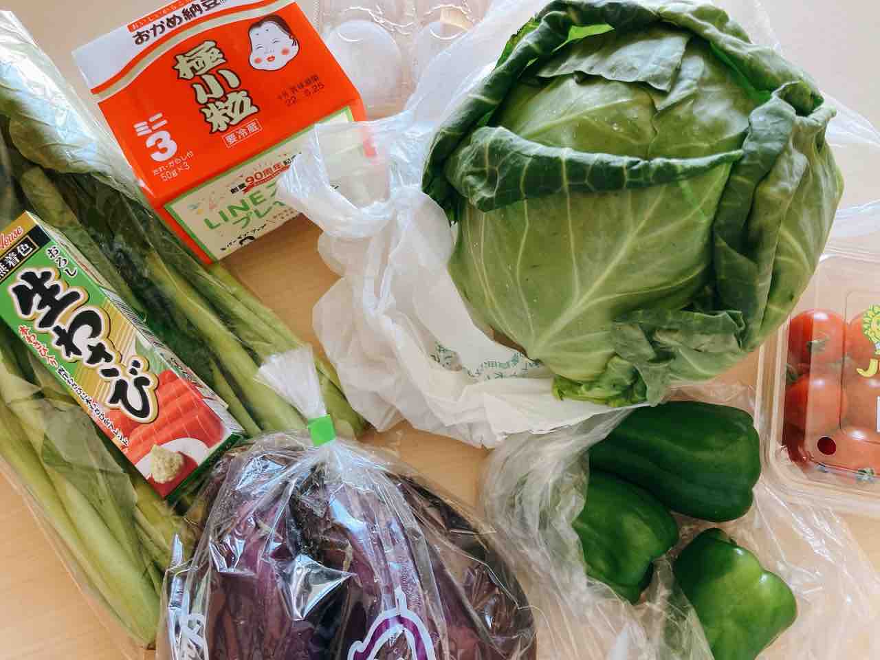 小松菜、ミニトマト、納豆(半額)、牛乳、