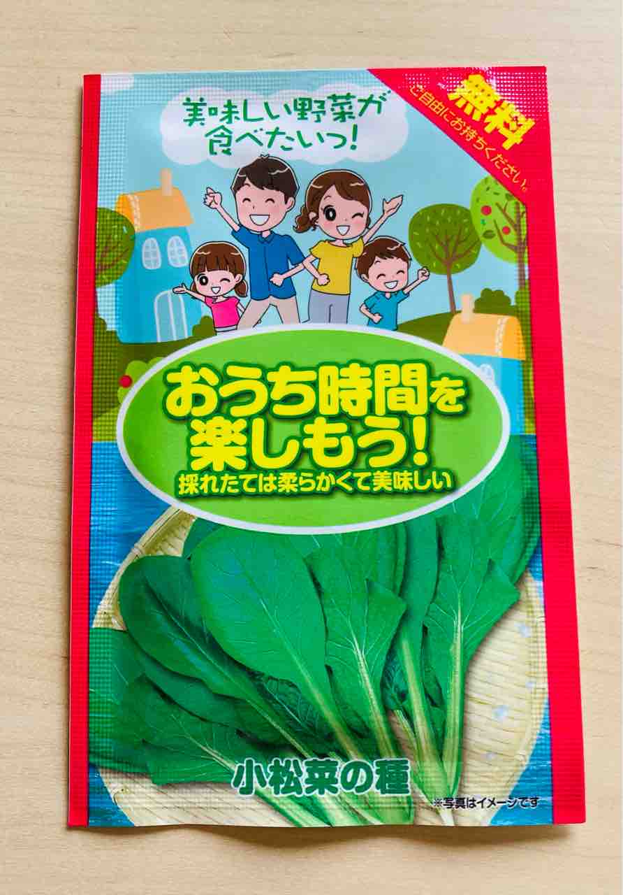 ちなみにこちらの小松菜の種は、ホームセンターで無料でいただいた物