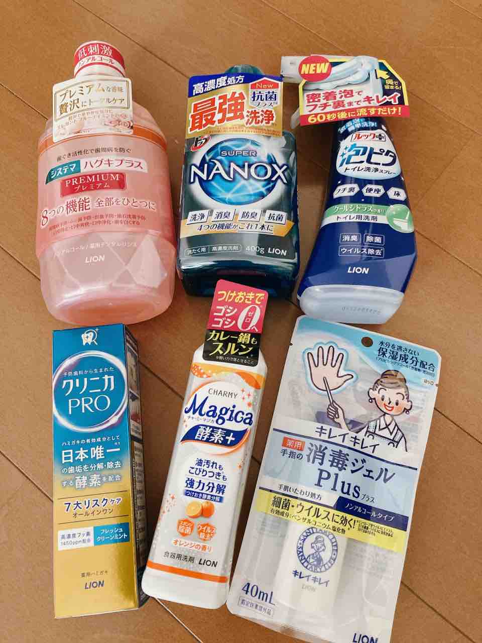 マウスウォッシュみたいなのと洗濯洗剤トイレ掃除洗剤、歯磨き粉、食器洗い洗剤