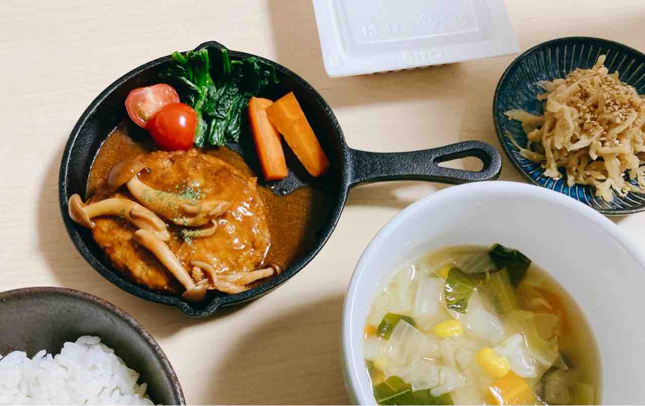 スキレットに煮込みハンバーグとはお洒落ですね。